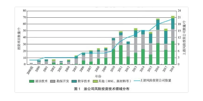根据IHS Markit公司数据,近年国际石油公司数字化投资在科技投入中占比升高,已成为石油公司与服务商技术合作的首要领域。石油公司的投资构成表明,2014年以来的低油价并未阻碍石油公司的技术投资,2016年与2018年的技术风险投资甚至有较大增幅(图1)。上游技术投资主要涉及清洁能源技术、勘探技术、开发技术、数字化技术4个领域,数字化技术的占比在2013年以后有明显提升。各类石油公司关注的领域有所不同,独立石油公司更关注能够短期见效、直接降低成本的数字化方案,跨国石油公司则偏好能够给公司带来整体效率提升的综合平台和一体化方案。