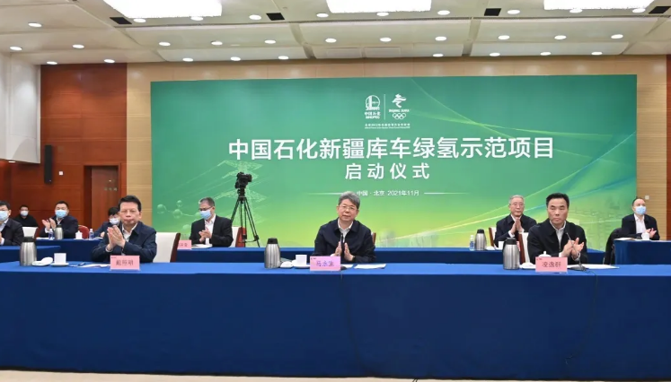 2021年11月30日,中国石化在北京、乌鲁木齐、新疆库车三地举行云启动仪式,宣布我国首个万吨级光伏绿氢示范项目——中国石化新疆库车绿氢示范项目正式启动建设,这是全球在建的最大光伏绿氢生产项目,投产后年产绿氢可达2万吨。中国石化集团公司董事长、党组书记马永生,新疆维吾尔自治区代主席艾尔肯•吐尼亚孜出席仪式并致辞。新疆维吾尔自治区副主席赵青参加仪式,中国石化集团公司副总经理凌逸群主持仪式。
