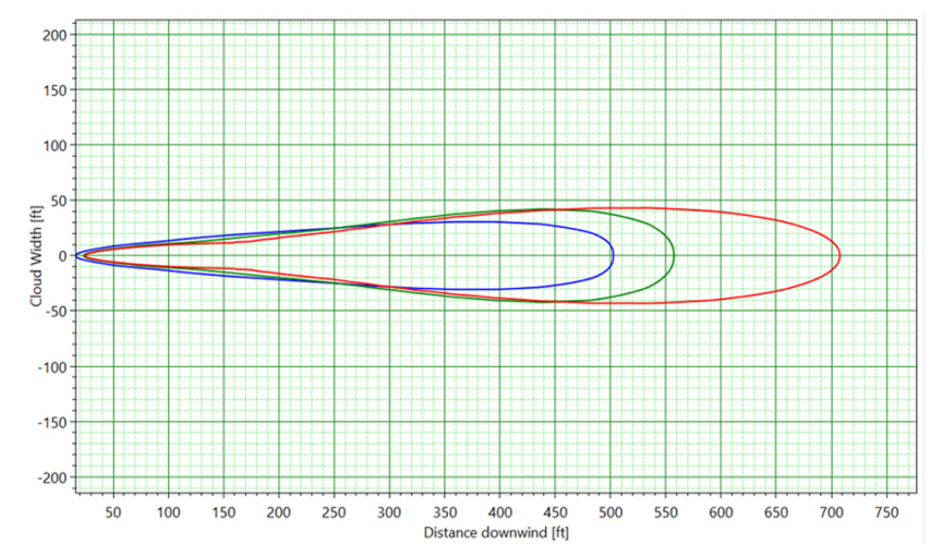 图2. 最坏情况下水平释放情景的隔离区评估示例。